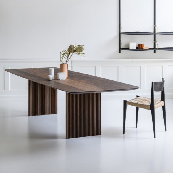 Une table longiligne avec un grand niveau de détails et une précision artisanale.