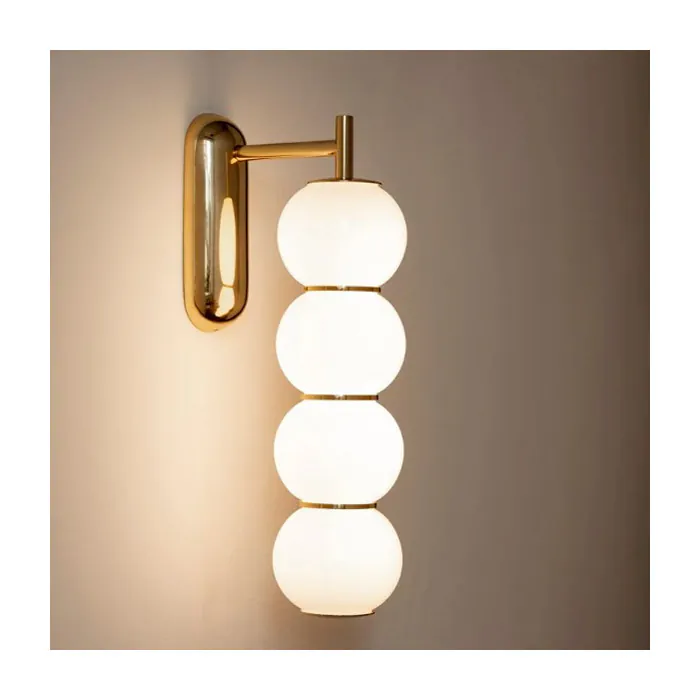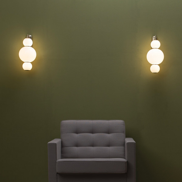 L’applique Pearls se distingue par son élégance et sa polyvalence, s’intégrant avec naturel dans tous les espaces et s’adaptant à toutes les ambiances. Son design repose sur l’association de sphères en verre de tailles variées, créant un jeu de volumes et de lumière à la fois raffiné et contemporain.