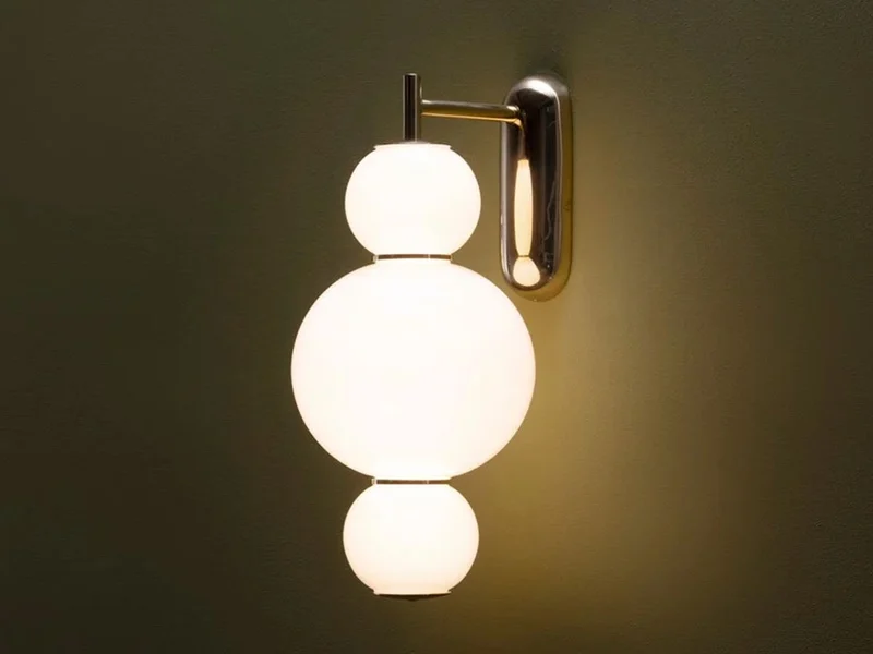L’applique Pearls, élégante et polyvalente, associe des sphères de verre de tailles variées pour une lumière raffinée, modulable et personnalisable selon vos envies.