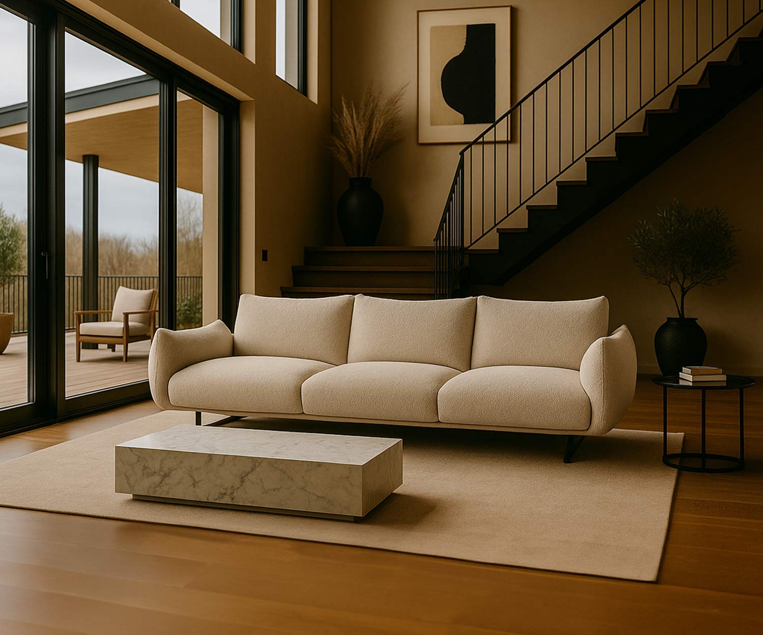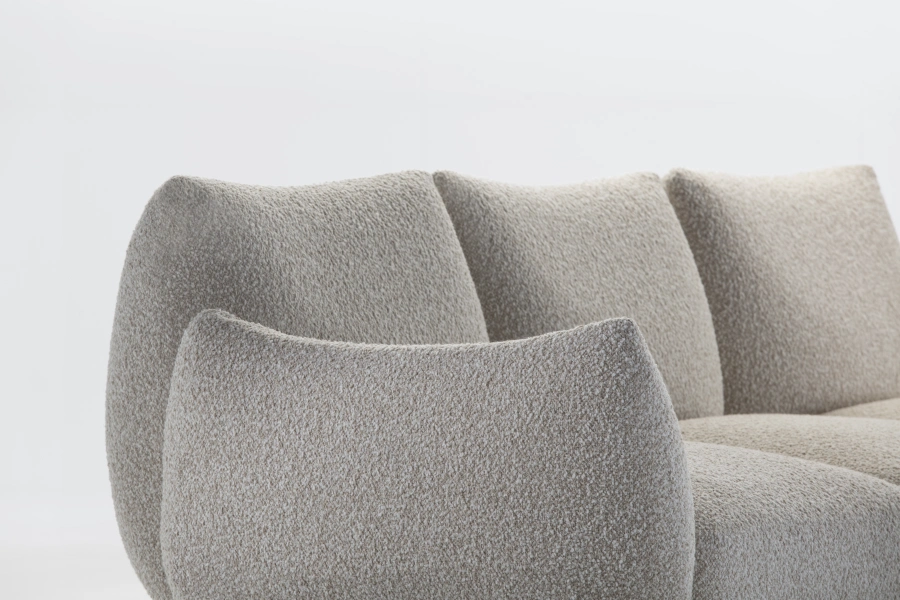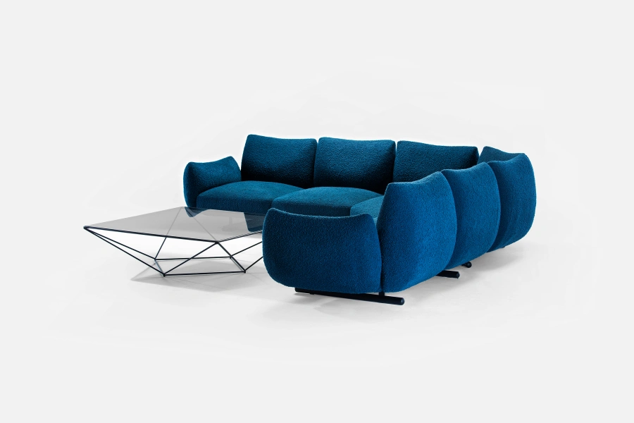 Le canapé s’ouvre à la générosité d’un module d’angle, qui enrichit la profondeur d’assise et invite à de nouvelles postures.