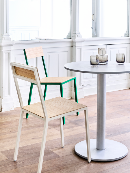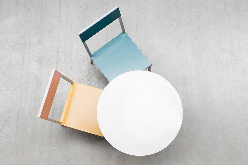L’armature en aluminium de la chaise est mat tandis que son assise et son dossier colorés adoptent des nuances satinées ce qui lui donne cette esthétique typique de Muller Van Severen.