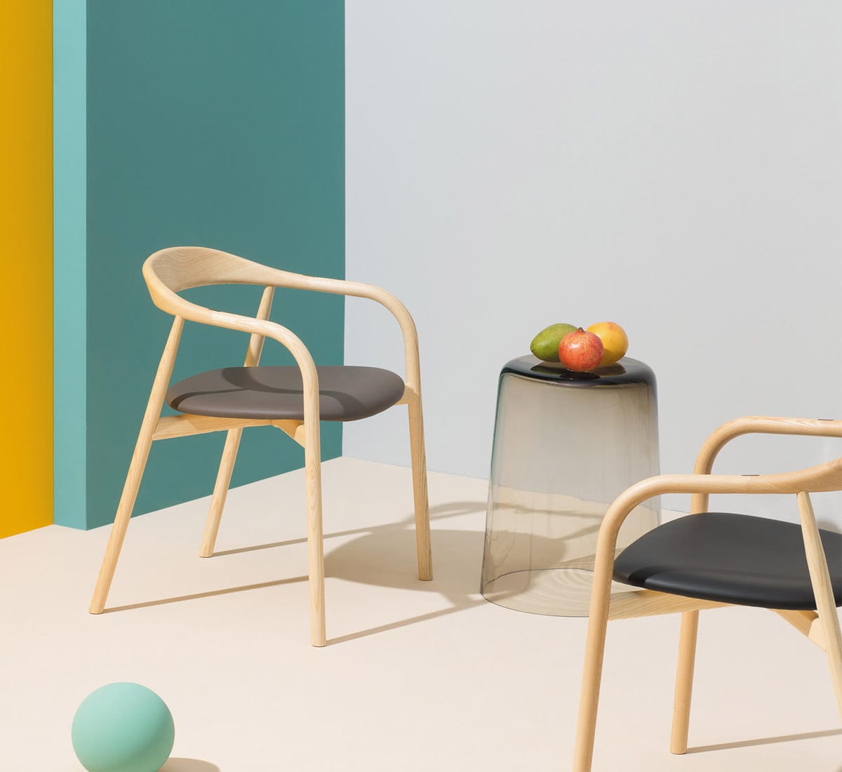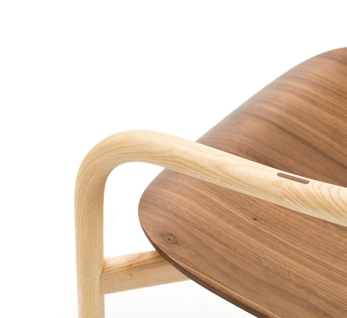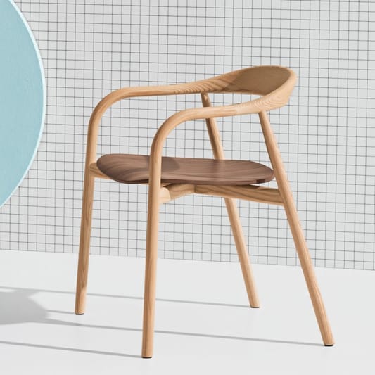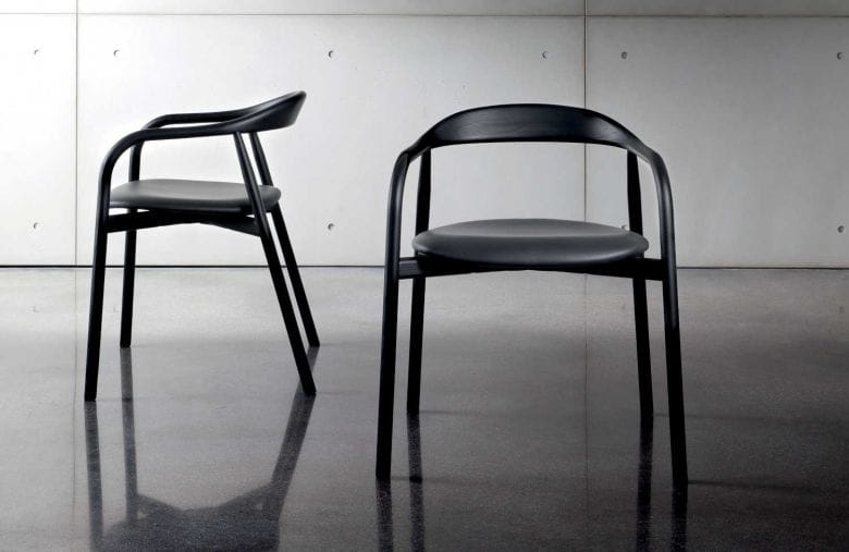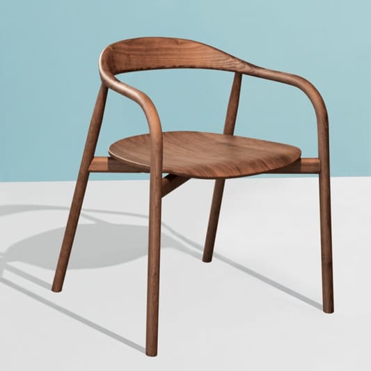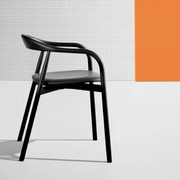Sa structure en frêne peut être teintée de different façon, et son assises en contreplaqué plaqué de noyer peut etre rembourrée et recouverte de cuir bovin 100% italien ou de tissu en laine Kvadrat.