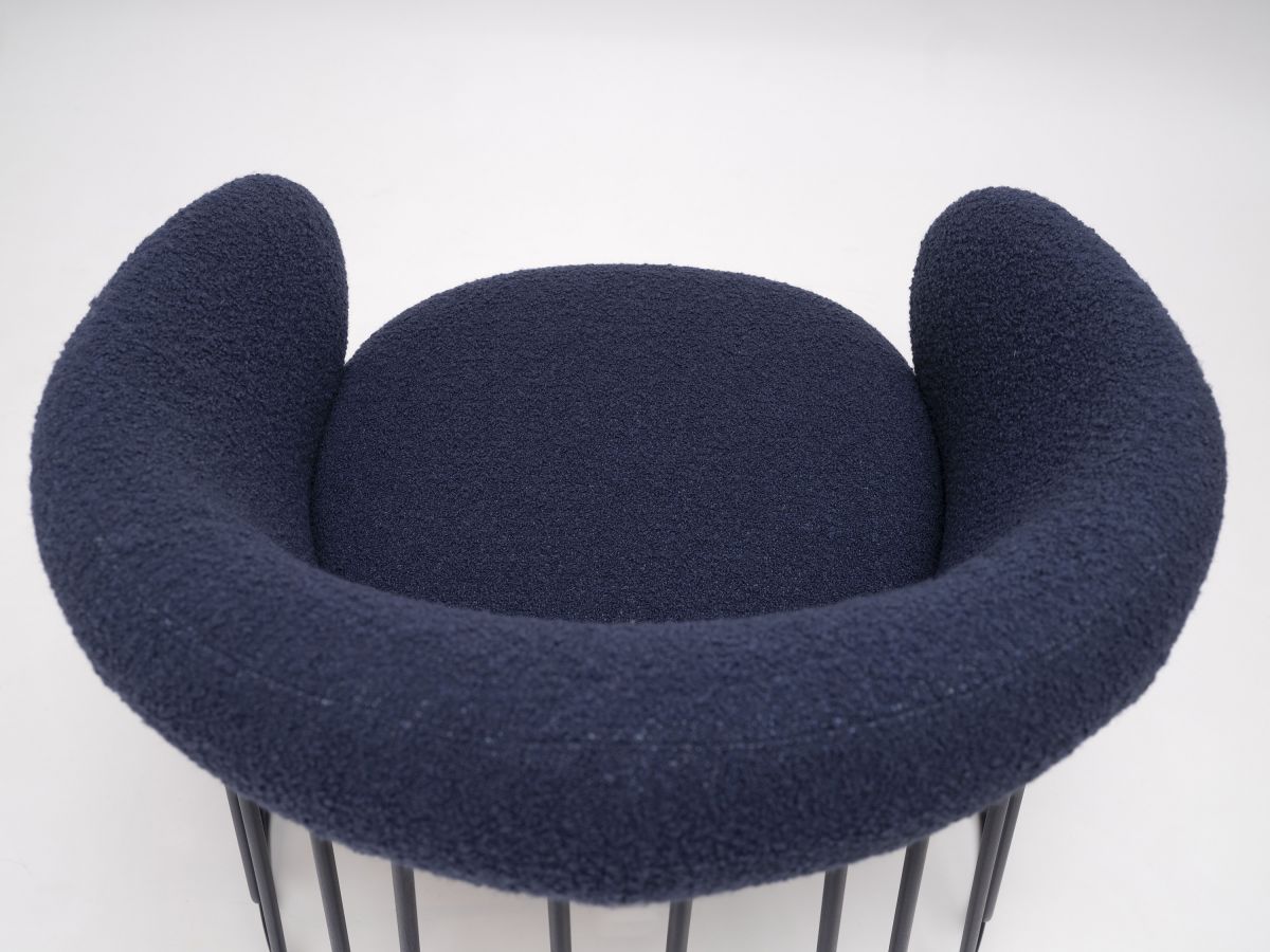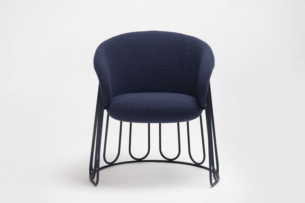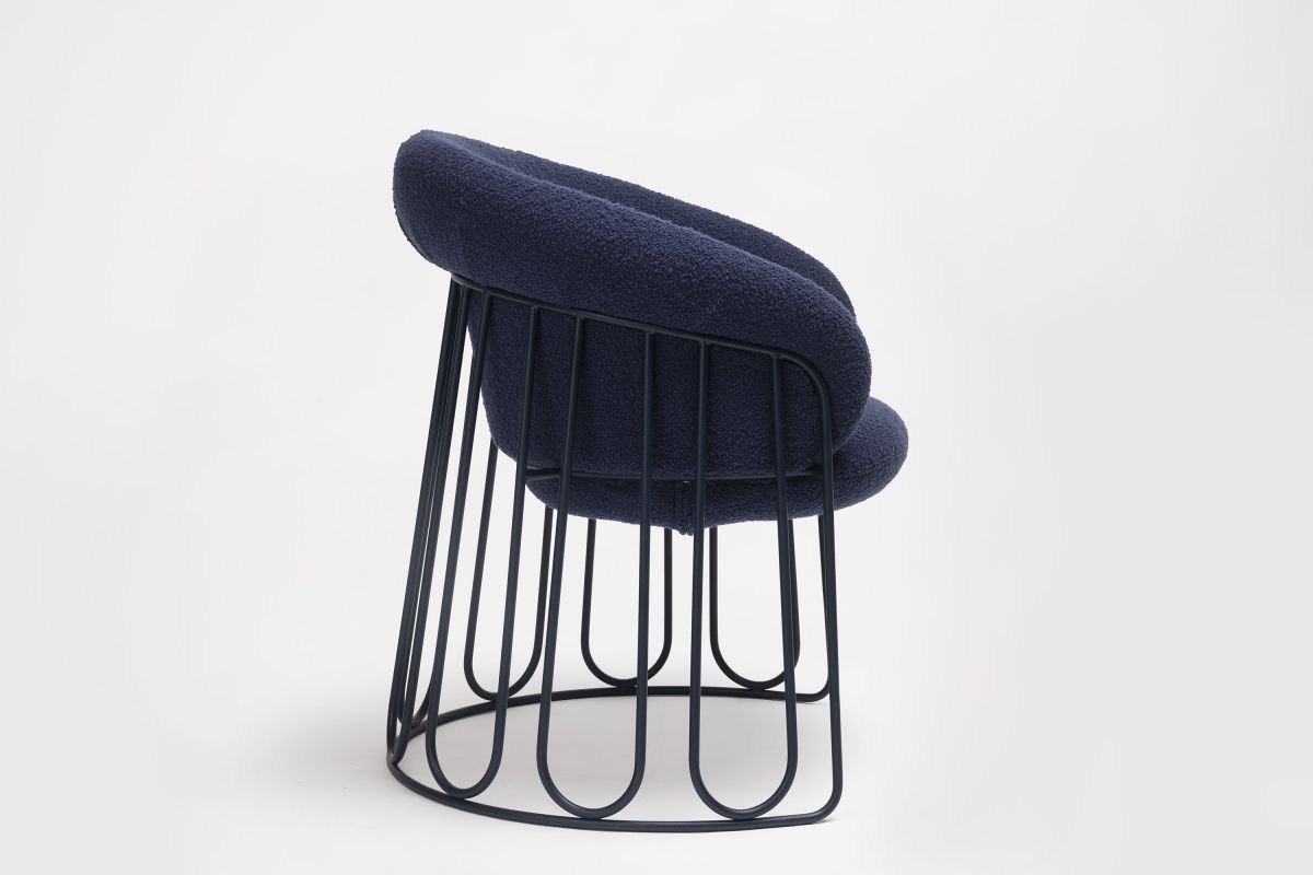 Chaque assise est tapissée à la main dans les ateliers de la marque Ondarreta, et peut reposer sur trois types de structures différents : une structure à quatre pieds en acier, un piètement luge aux formes organiques et décoratives et un piétement en bois robuste.