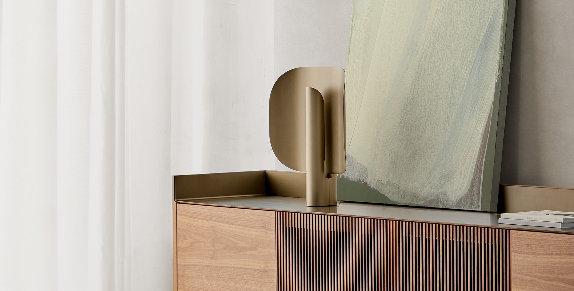 La collection de luminaires Stockholm, signée Mario Ruiz pour Punt Mobles, associe cylindre métallique et abat-jour incurvé pour diffuser une lumière subtile et élégante, déclinée en lampes à poser et lampadaires.
