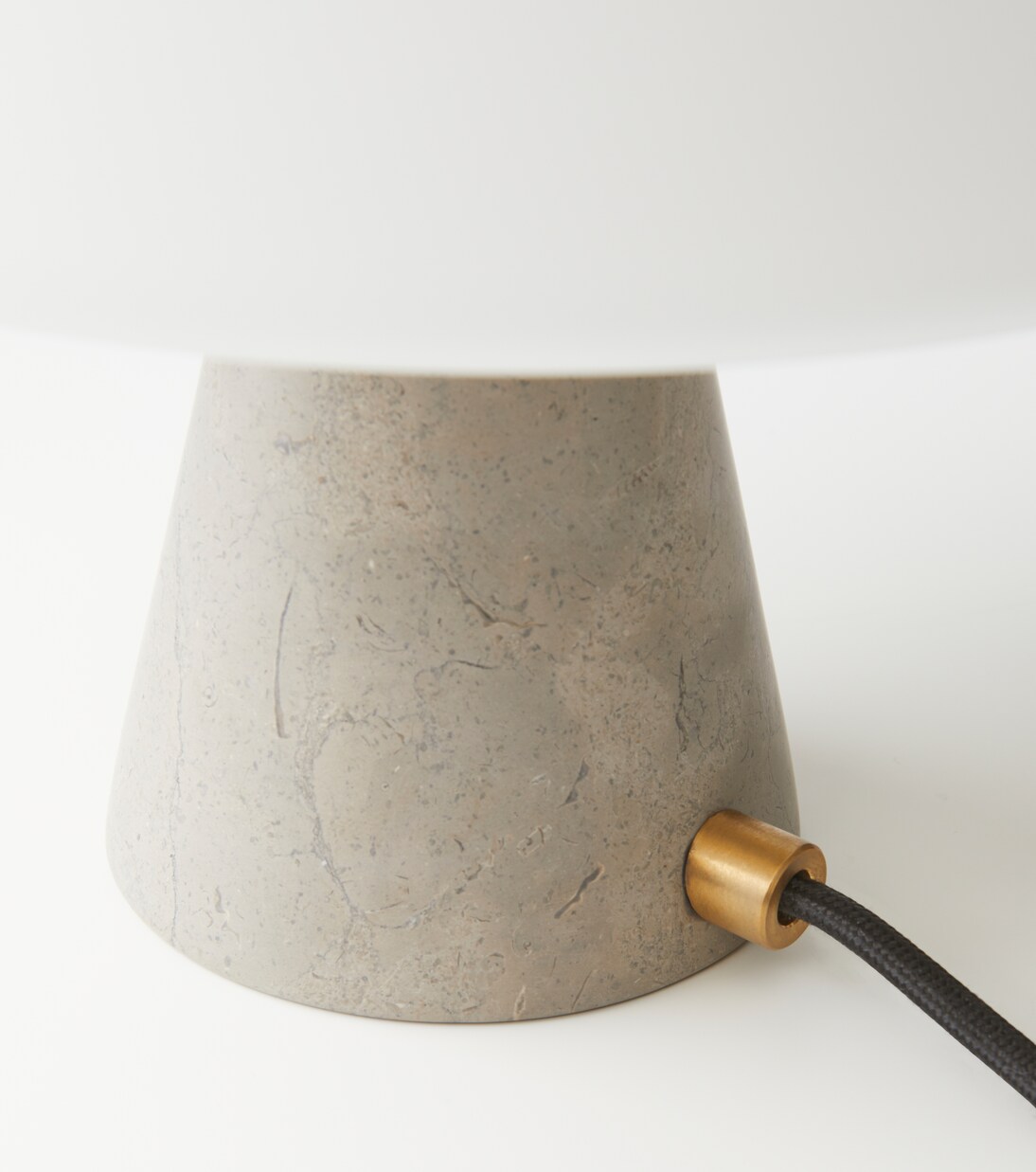 La « Meadow » allie lumière et matière dans une harmonie organique, son abat-jour en dôme et sa base en pierre créant une présence à la fois discrète et poétique.