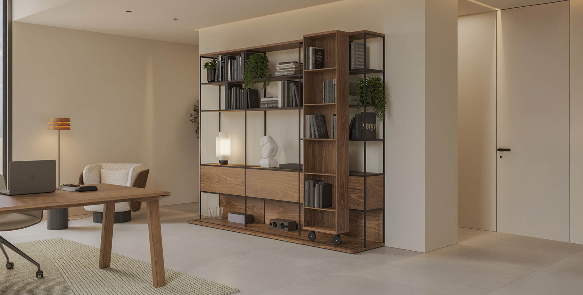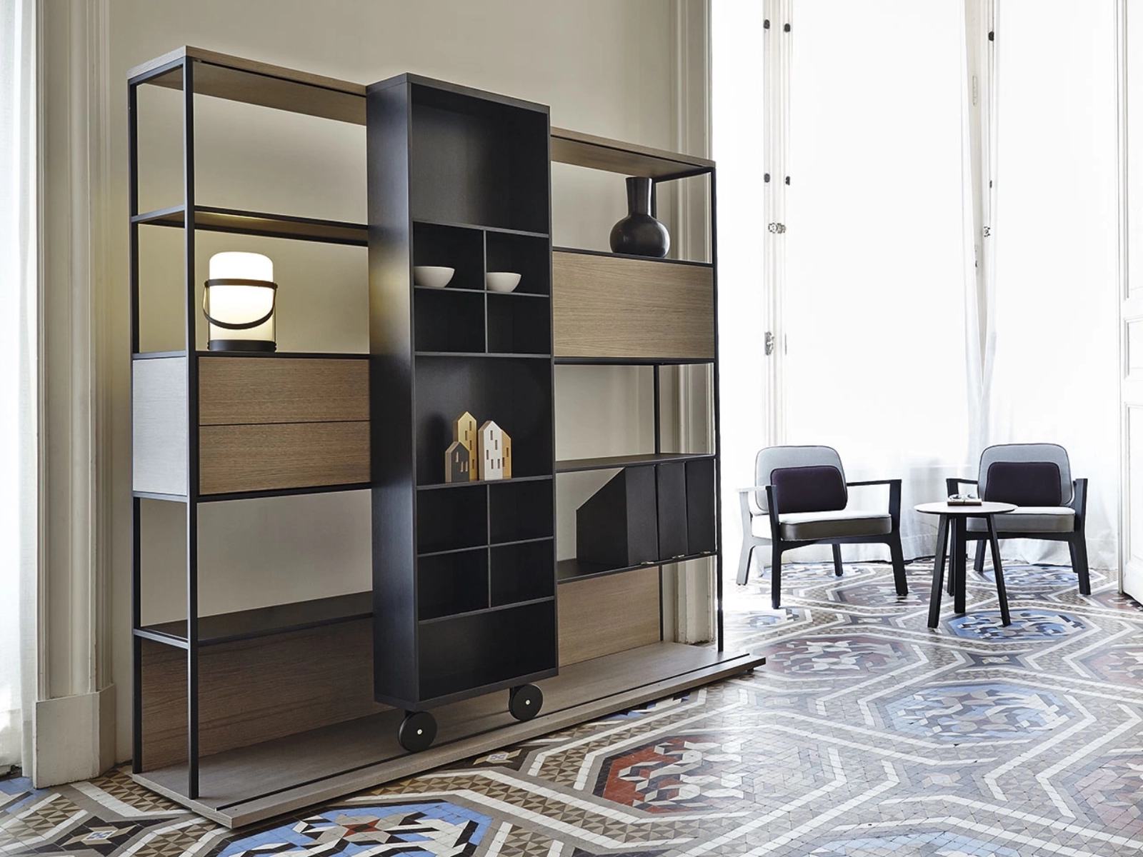 La collection OPEN réunit bibliothèques mobiles, buffets et meubles TV, héritiers de la légendaire bibliothèque La Literatura, conçue en 1985 et récompensée par de nombreux prix, dont la sélection ADI FAD 1986, exposée dans des musées et ayant contribué au Prix National du Design pour Punt Mobles en 1997.