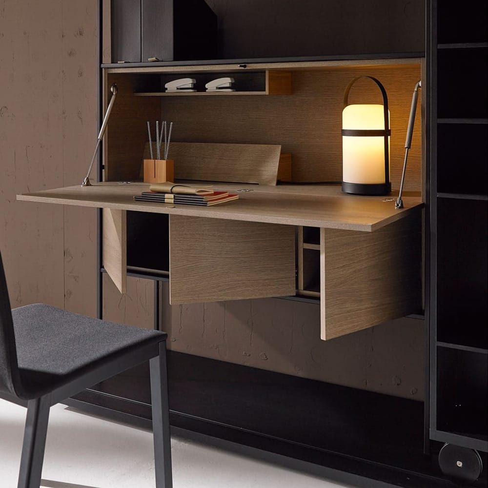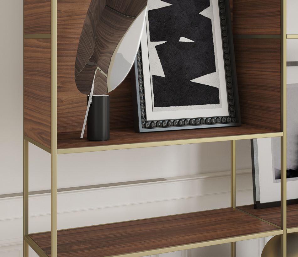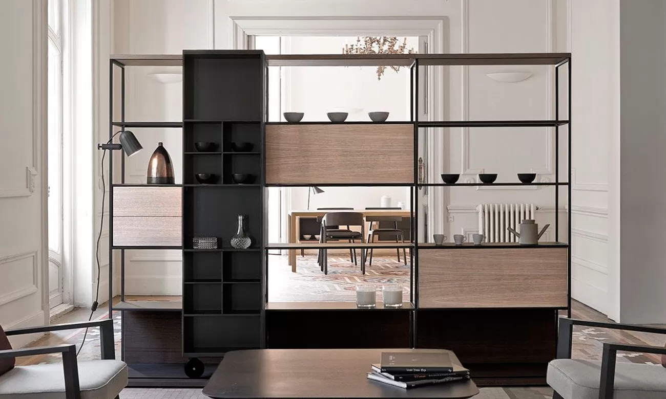 Dans sa version OPEN, imaginée en 2014, les volumes deviennent transparents et plus légers, capables de contenir des objets, de servir de cloisons et de structurer l’espace avec raffinement.