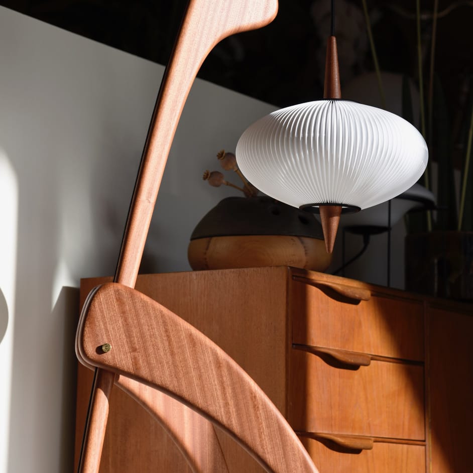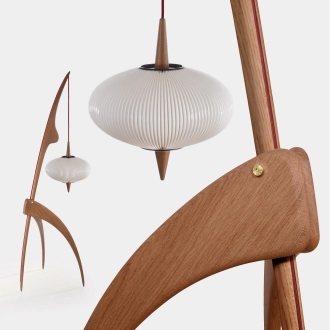 Intemporel du design, ce luminaire devenu iconique est maintenant réédite dans différente essence de bois.