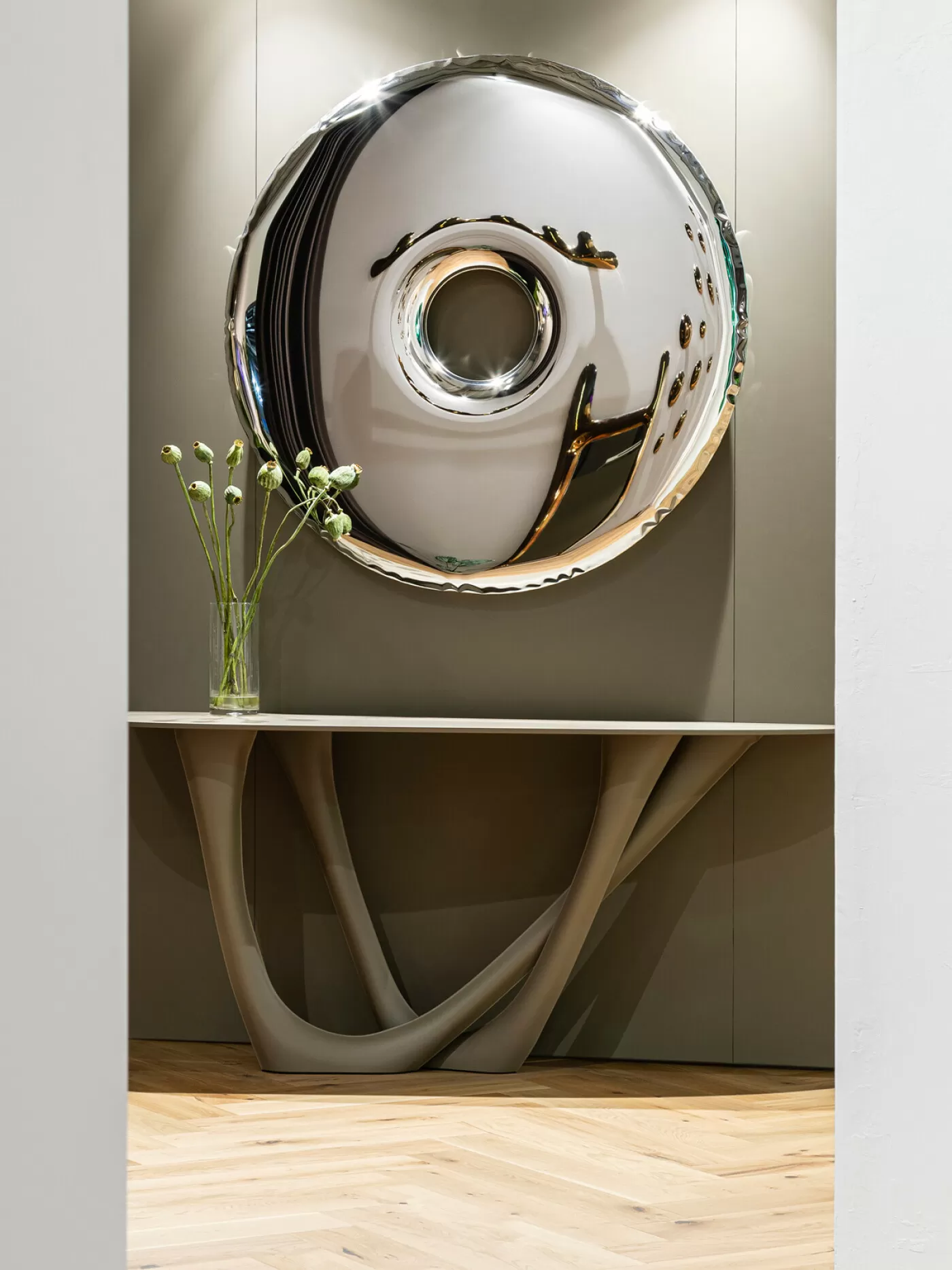 Le miroir rondo est fabriqué selon la technique FiDU est aussi unique que son reflet.