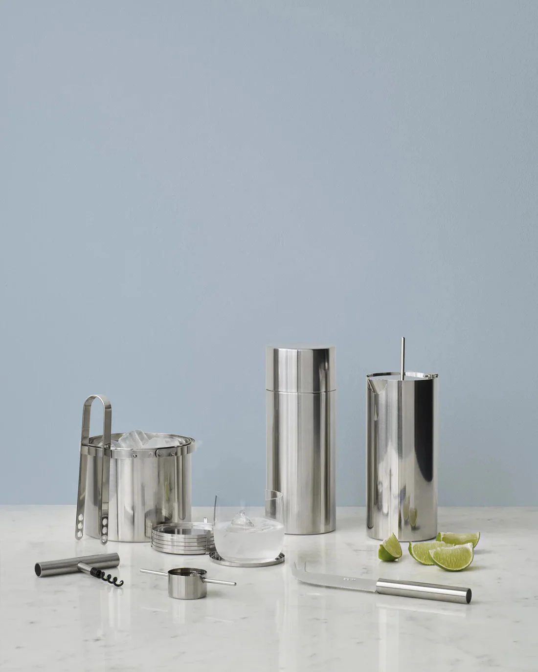 En 1967, Arne Jacobsen esquisse pour Stelton une vision radicale de l’art de la table : Cylinda-Line. Une collection sculpturale aux lignes pures, où le cylindre devient langage, et l’acier inoxydable, matière de lumière.