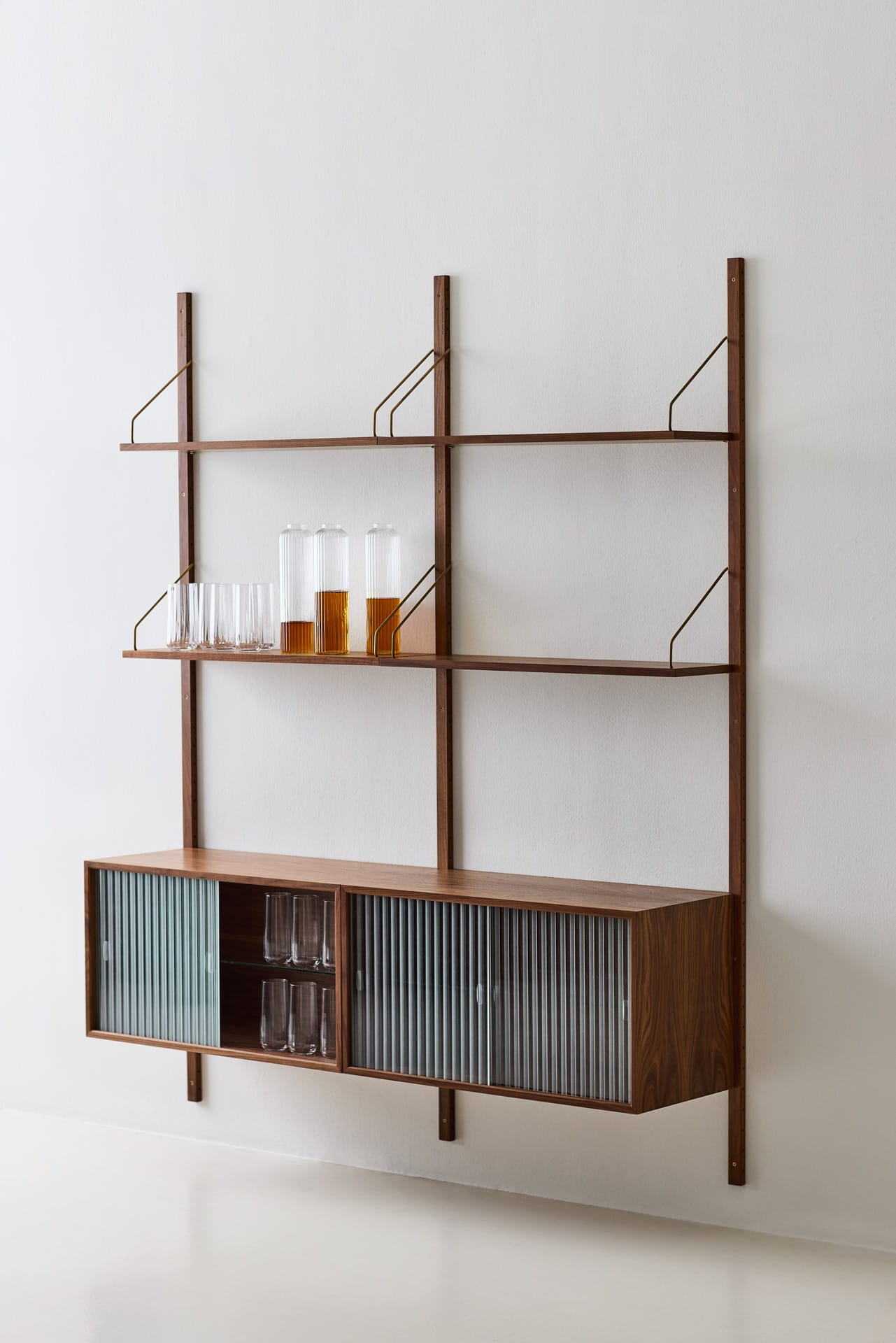 Il se compose de rails en bois fixés au mur, d’étagères avec des crochets en laiton ou en acier inoxydable et de divers modules tels que des armoires, des tiroirs et des bureaux, vitrines… qui peuvent être personnalisés en plusieurs combinaisons individuelles – Poul Cadovius a affirmé que le système d’origine avait 16 millions de possibilités de combinaison.