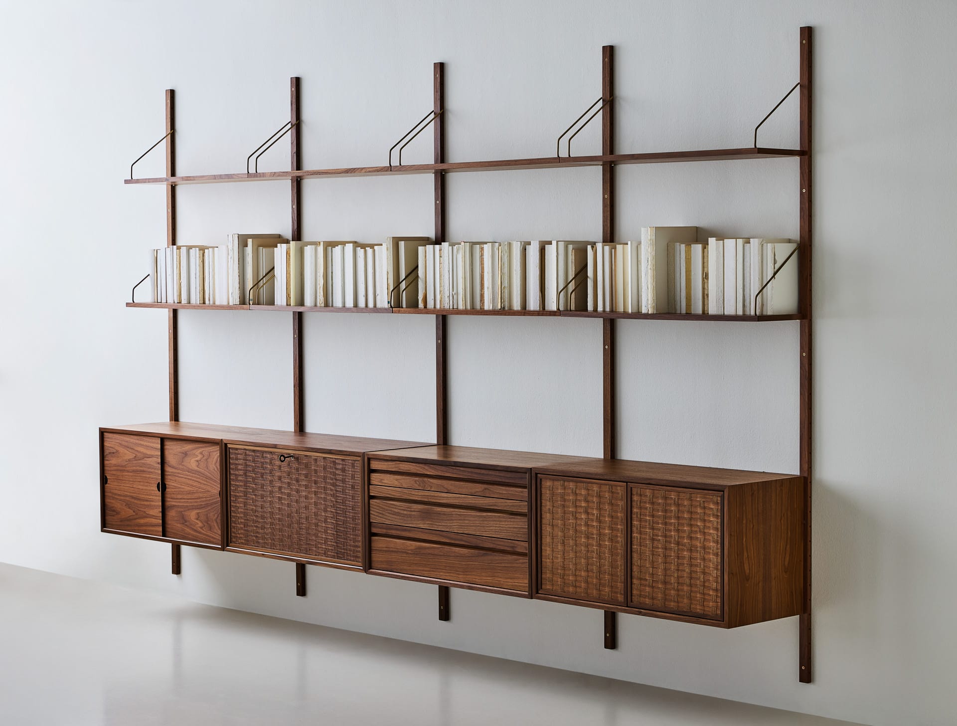 Le système d’étagères ROYAL SYSTEM® a été conçu en 1948 par le légendaire designer et fabricant danois Poul Cadovius. C’était l’un des premiers systèmes de meubles suspendus au monde, et l’idée que les meubles ne devraient pas utiliser de surface au sol était innovante.
