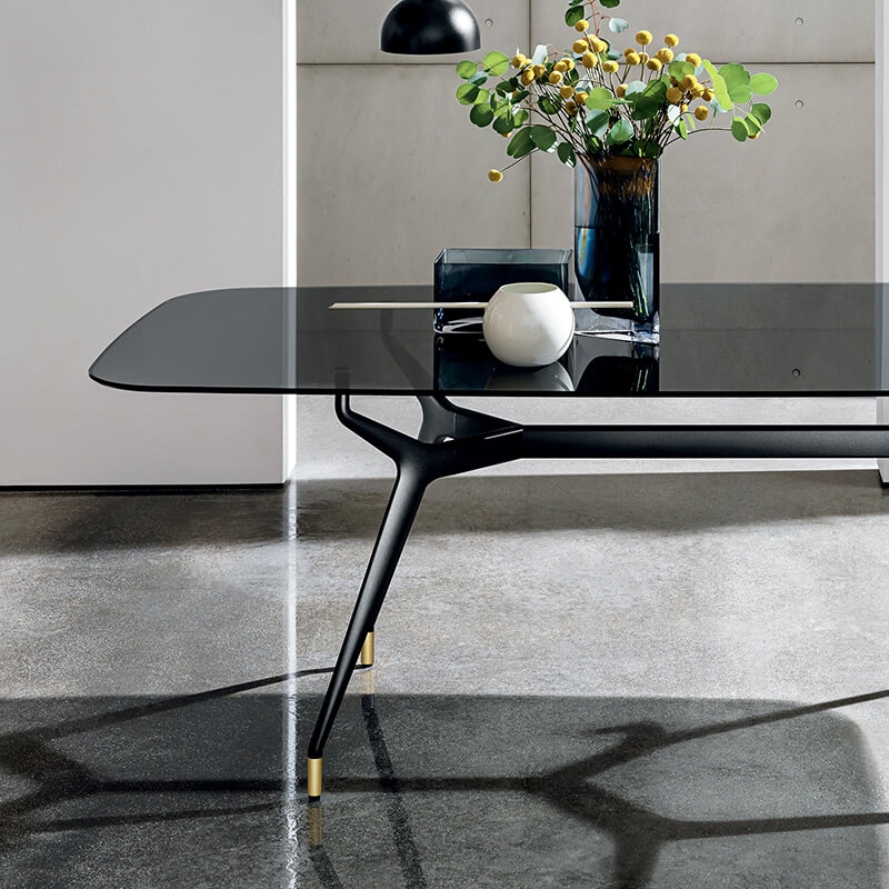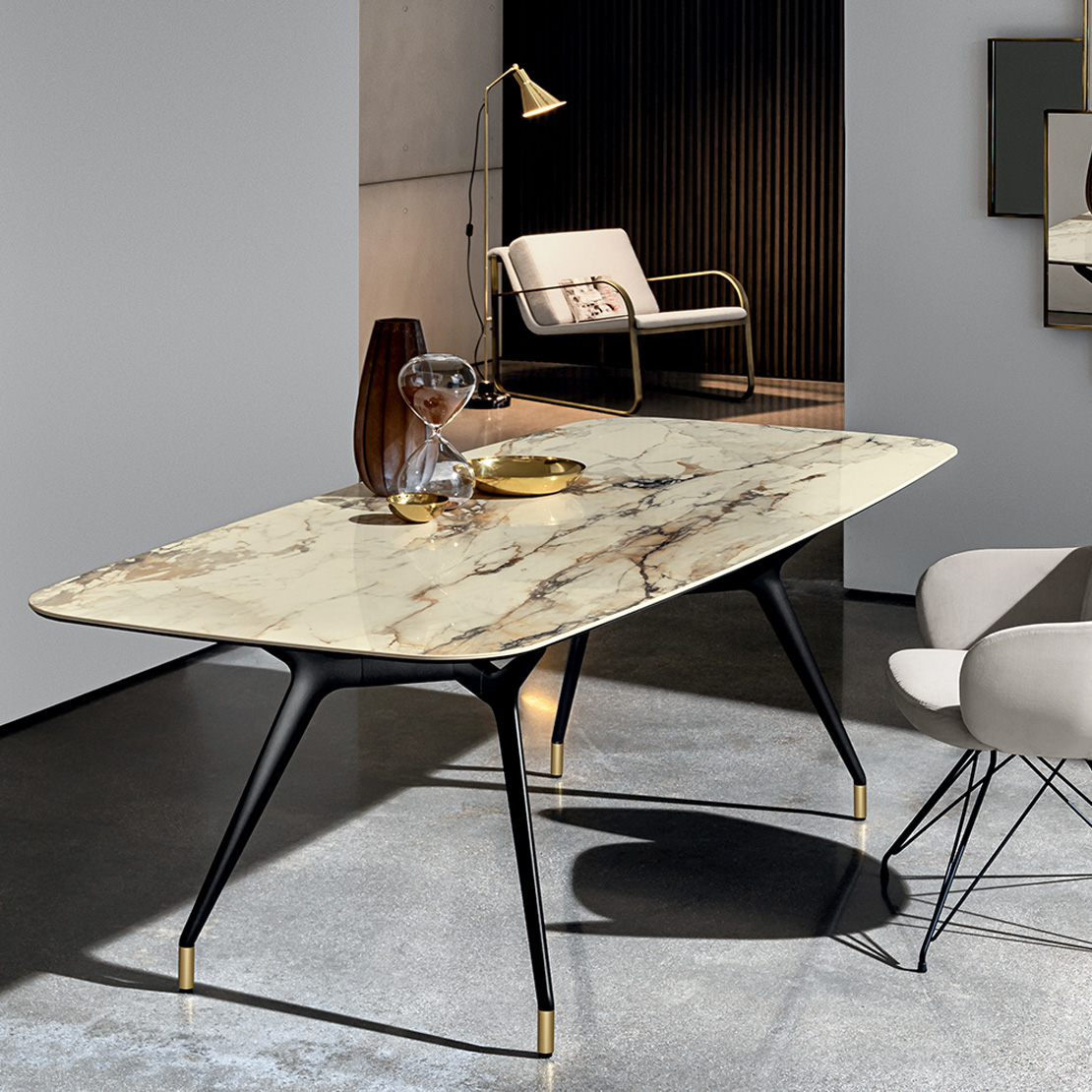 La naissance de table Arkos provient de sa base, qui prend forme grâce à un minutieux moulage sous pression en aluminium alliant parfaitement forme et technologie.