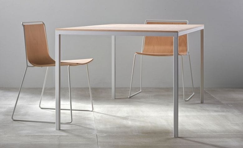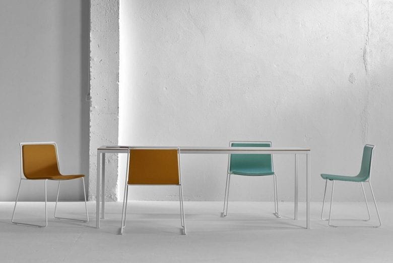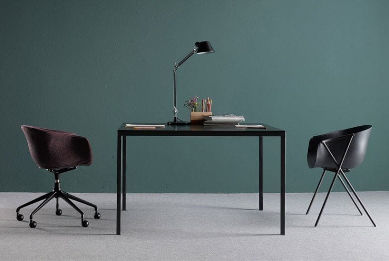 La structure de Dry est ainsi disponible dans de nombreuses teintes et son plateau est réalisable en chêne, hêtre, Fenix, céramique …