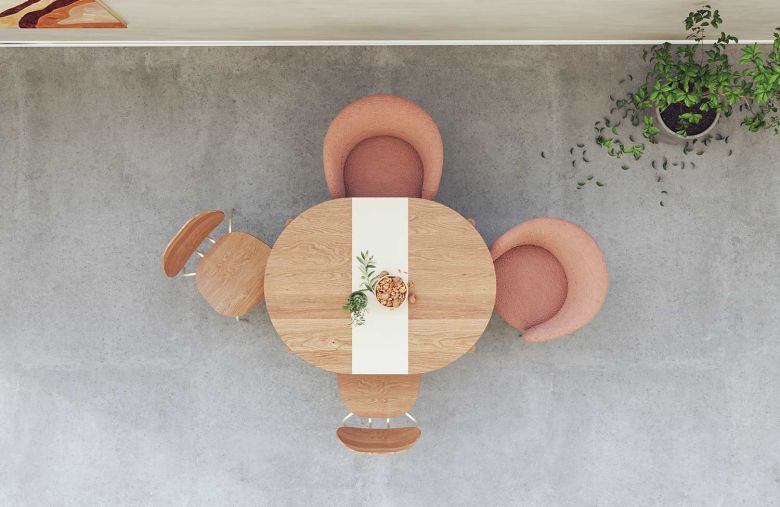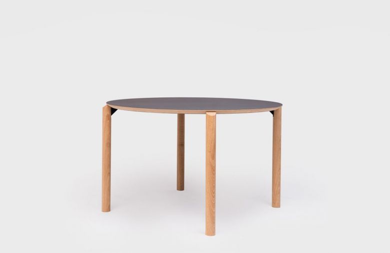 Une délicate table en chêne, disponible avec un plateau Fenix