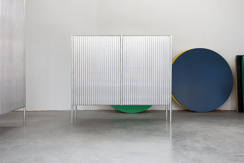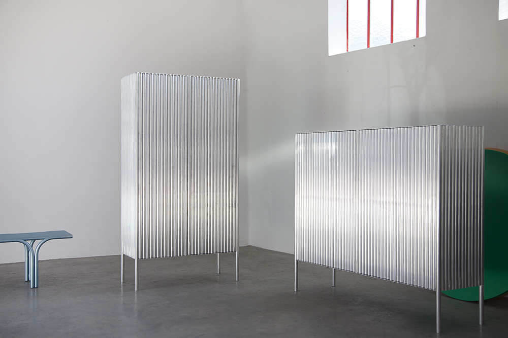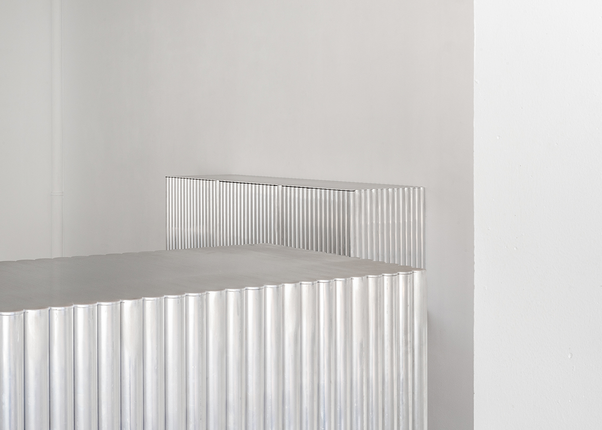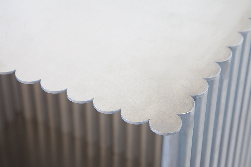 ALLTUBES cabinet low appartient à la série ALLTUBES imaginée par Muller Van Severen, une collection construite autour de la répétition rythmique de tubes ronds en aluminium. En jouant subtilement avec les courbes, la lumière et les surfaces, cette série réunit plusieurs meubles de rangement, un banc et une chaise — autant de pièces qui forment une famille cohérente, unie par un même langage formel.